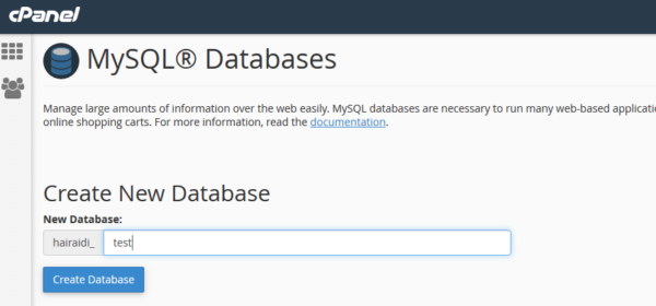 - Na seção “Criar novo banco de dados”, insira o nome do banco de dados desejado e clique no botão “Criar banco de dados”;